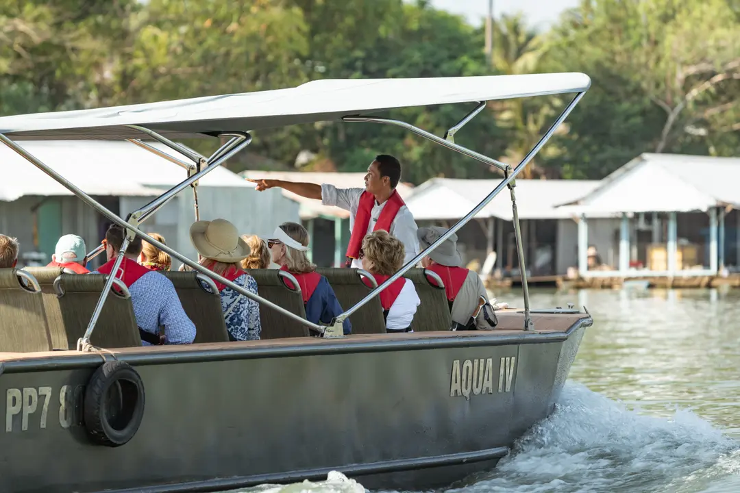 In Tonle Sap lake, discover the local way of life on a Mekong luxury cruise while exploring floating markets, sampling local produce, and interacting with the residents.